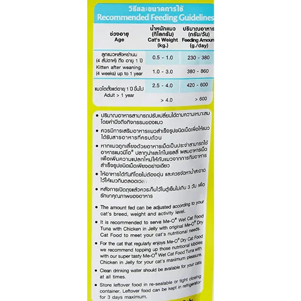 Containing Tuna with Chicken, the Me-O Tuna with Chicken in Jelly delivers a variety of textures and flavours that cats adore. It can also be used as a food topper to enhance the flavour and maximize your cat pleasure.