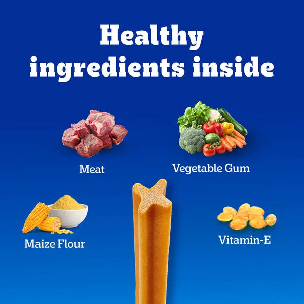 Pedigree Dentastix Oral Care Treats are perfect for medium-sized dogs (10-25 kg) who need dental care. These X-shaped chews help clean teeth and reduce plaque and tartar buildup, supporting overall oral health. Each treat is designed to keep your dog’s breath fresh and gums healthy, making dental maintenance enjoyable.