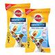 Pedigree offers healthy and tasty dog treats that keep your dog wagging its tail. According to Kortegaard et al., JSAP 2008, 4 out of 5 dogs over the age of three suffer from gum disease. Pedigree Dentastix Oral Care Dog Treat is an effective daily dental care dog treat recommended by vets. It is scientifically proven to help reduce tartar build-up in your dog’s teeth by up to 80%. When fed daily as part of an oral care routine, this treat keeps your dog's teeth and gums strong and healthy by cleaning between teeth and down to the gum line. Its unique x-shape and abrasive texture help in cleaning hard-to-reach teeth. Active ingredients such as Zinc Sulphate and Sodium Tripolyphosphate provide healthy oral care for your furry friend. Just one stick of Dentastix a day is enough to keep your dog's mouth clean. This oral care treat is completely digestible and has no residue, so it can be served as a tasty dog treat with actual dental benefits. It is recommended for all adult large -breed (25+ kg) dogs over 4 months of age. Pedigree treats are formulated based on research done by the Waltham Centre for Pet Nutrition. Keep your dog's mouth healthy and tail wagging by giving them Pedigree Dentastix.