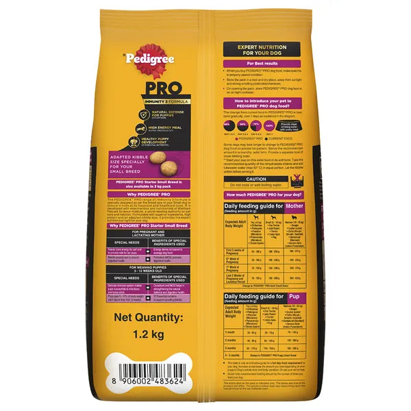 - SUITABLE FOR: Pedigree PRO Mother & Pup Starter is suitable for all small breed dogs like Beagle, Pekingese, Chihuahua, Pinscher, Tibetan Spaniel, Pug, Collie, Dachshund, etc.
